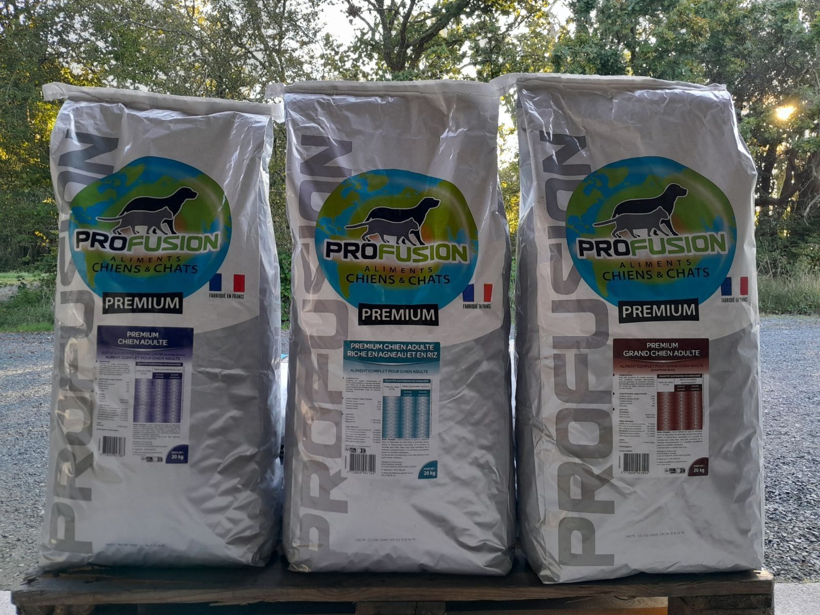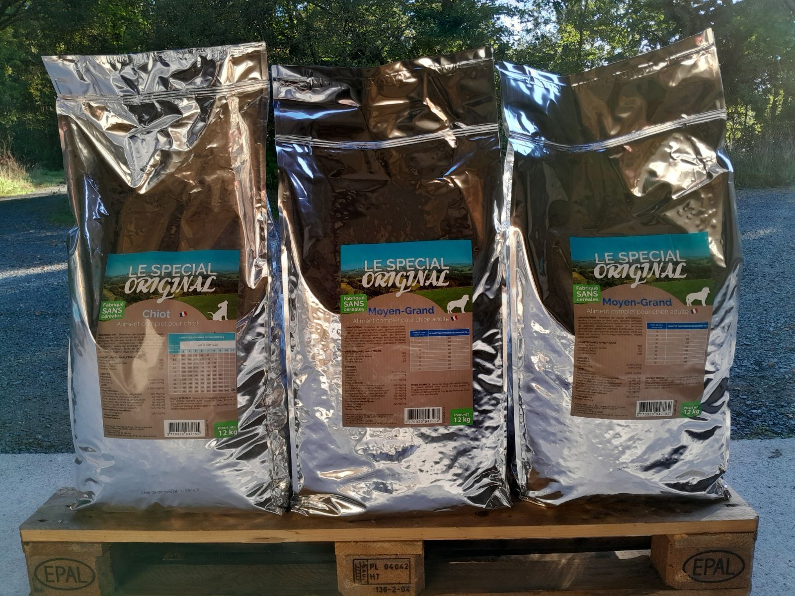 - Gamme superpremium sans céréales : 45 € le sac de 12 kg (poulet) ; 65,90 € le sac de 20 kg (poisson).